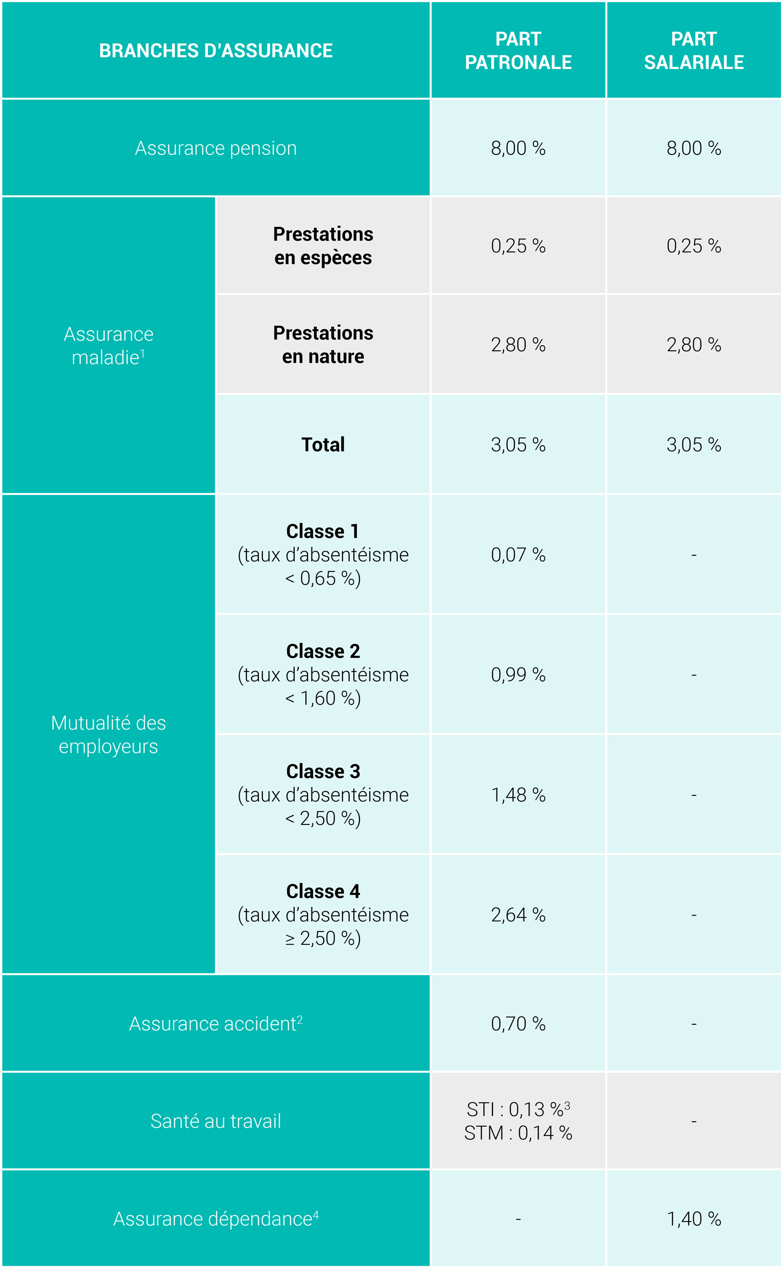 1 Les allocations et indemnités purement occasionnelles ainsi que les gratifications et les avantages en nature sont cotisables en matière d’assurance maladie au taux de 2,80 % (part employeur) et 2,80 % (part salariale).