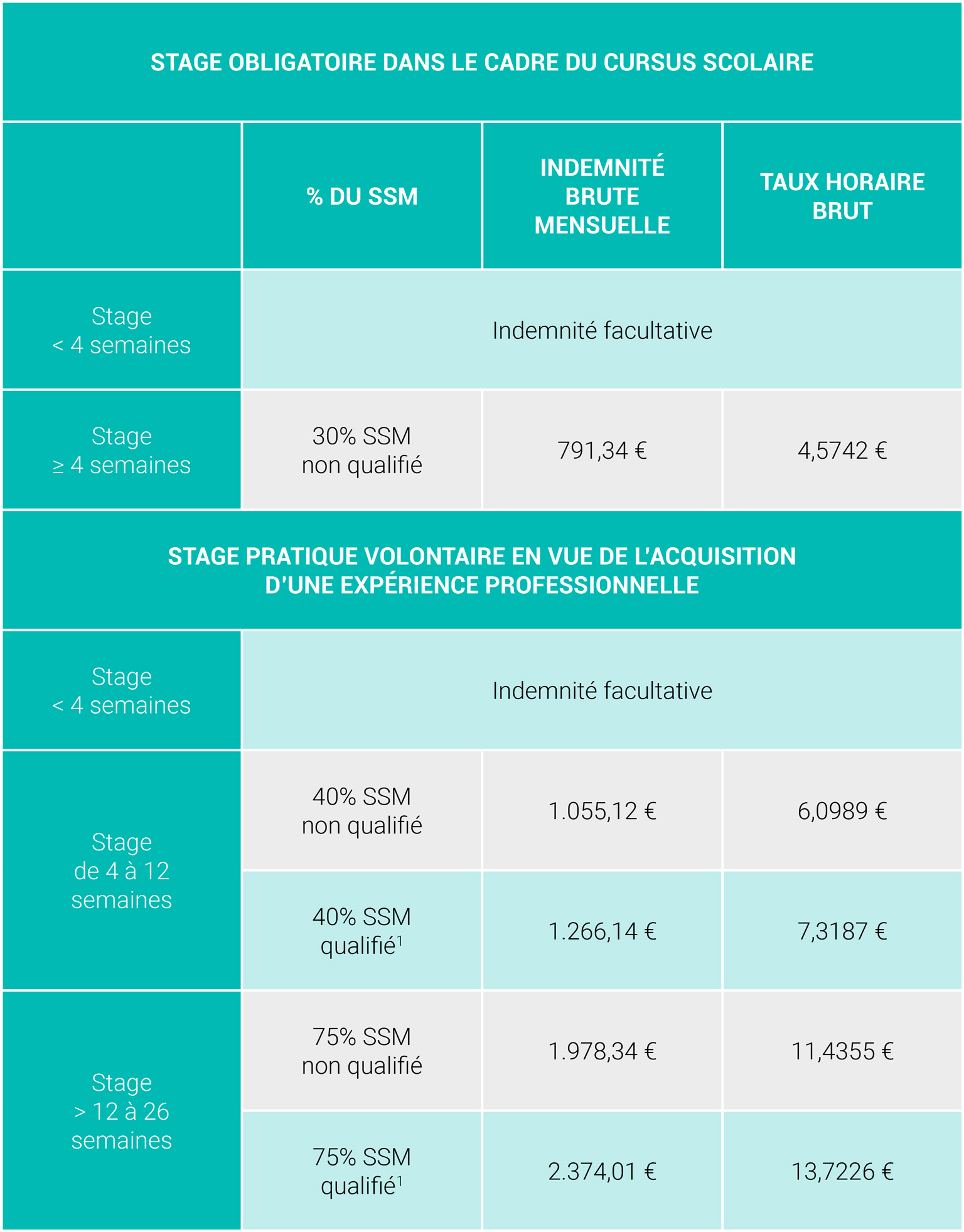 1 Pour les stagiaires qui ont validé un 1er cycle de l’enseignement supérieur ou universitaire, le salaire de référence correspond au SSM pour salariés qualifiés.